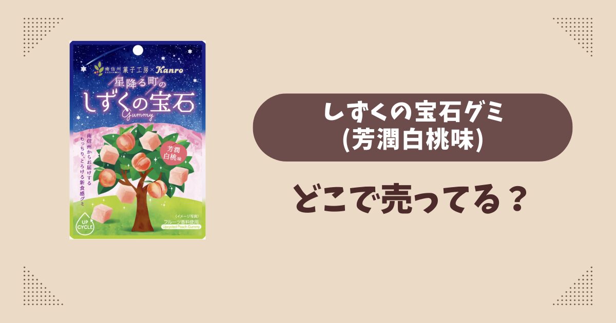 そこでこの記事では、しずくの宝石グミ(芳潤白桃味)が売ってる場所についてご紹介します。